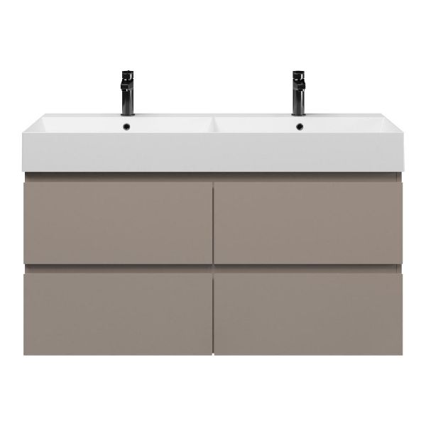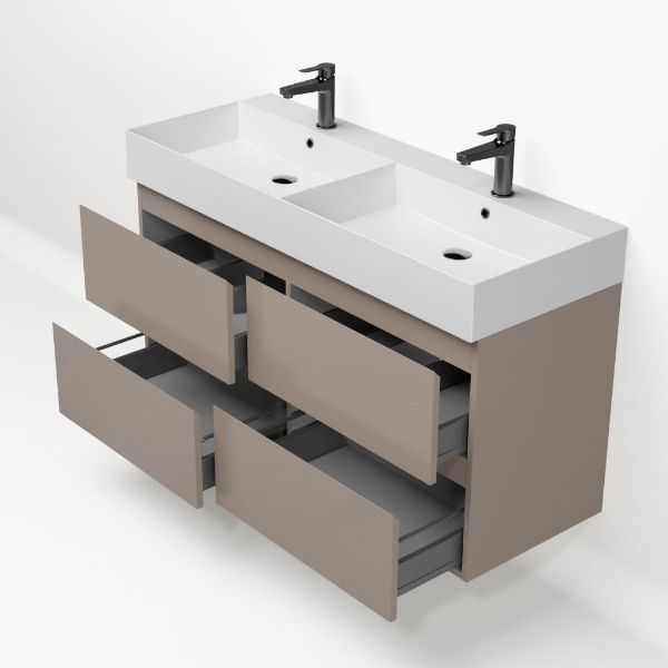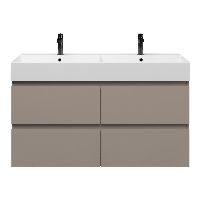 | Bellanti Gisella/Azzurra badmeubel 120x46 4 softclose laden licht taupe greeploos keramische wastafel dubbel wit mat met 2 kraangaten |