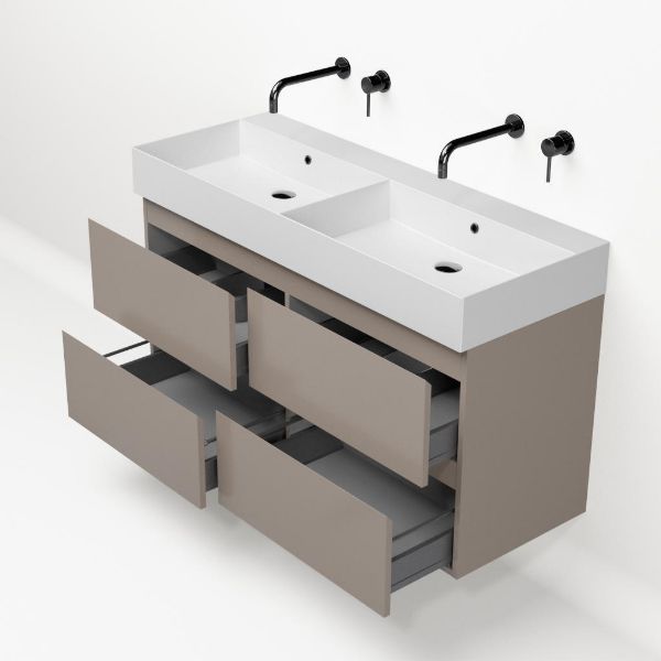 | Bellanti Gisella/Azzurra badmeubel 120x46 4 softclose laden licht taupe greeploos keramische wastafel dubbel wit mat zonder kraangaten |