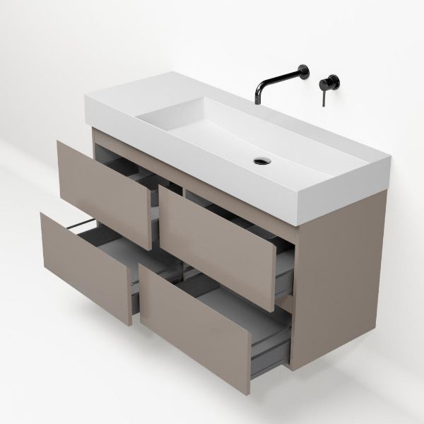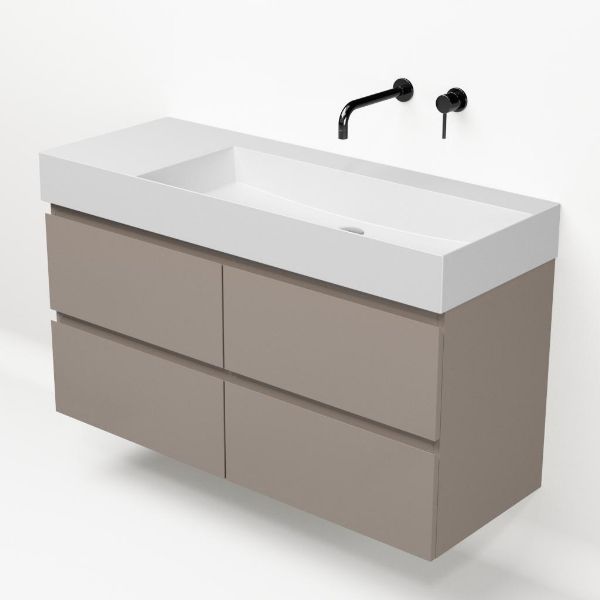 | Bellanti Gisella/Azzurra badmeubel 120x46 4 softclose laden licht taupe greeploos keramische wastafel rechts wit mat zonder kraangaten |
