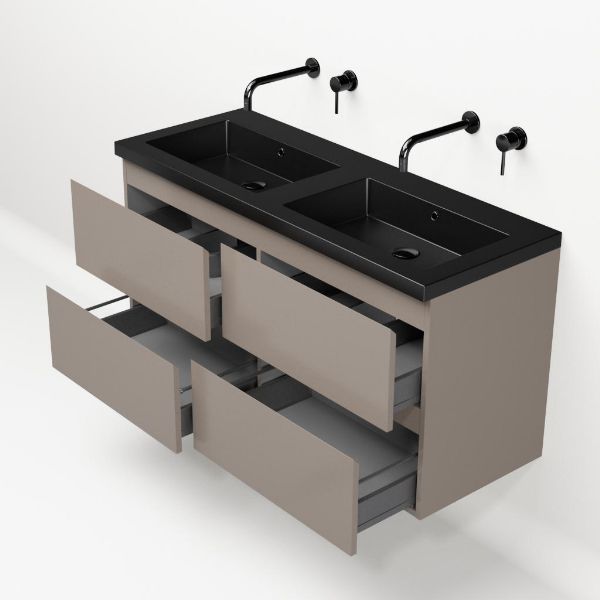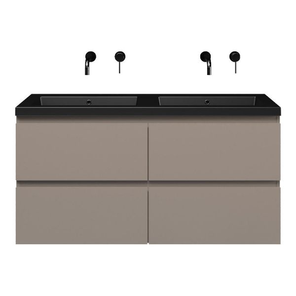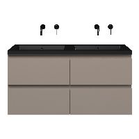 | | Bellanti Gisella/Esta badmeubel 120x46 4 softclose laden licht taupe greeploos polystone wastafel dubbel mat zwart zonder kraangaten |