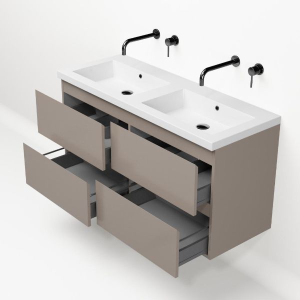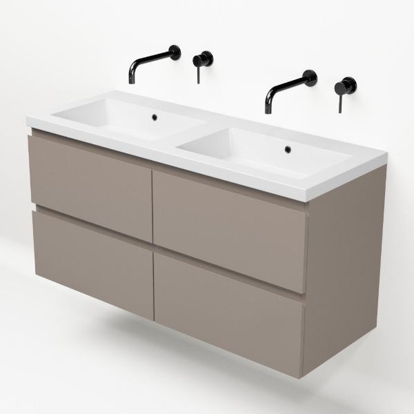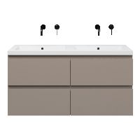 | | Bellanti Gisella/Esta badmeubel 120x46 4 softclose laden licht taupe greeploos polystone wastafel dubbel wit zonder kraangaten |