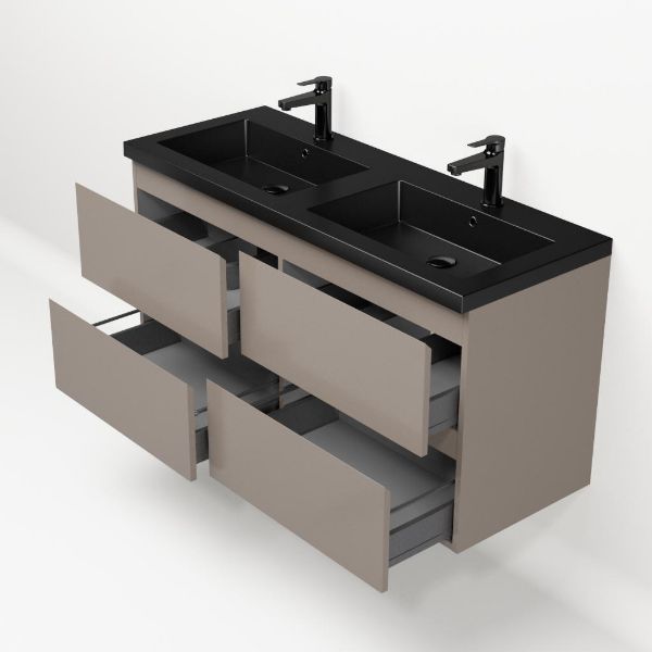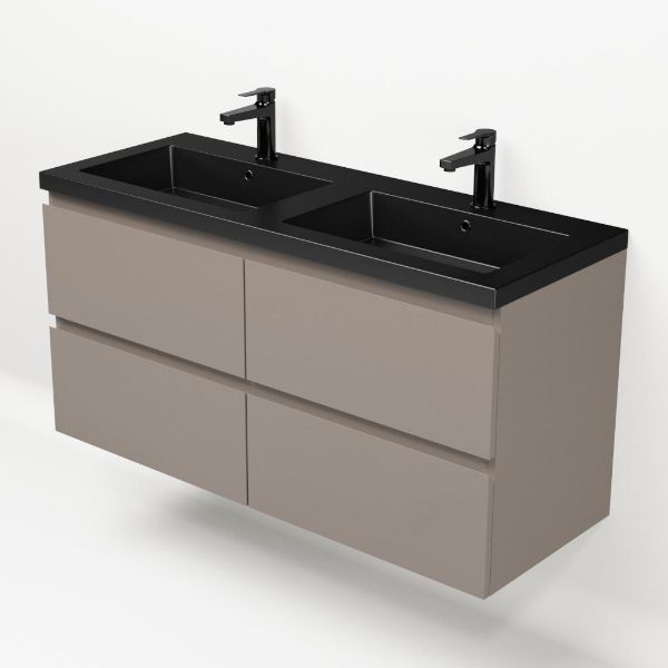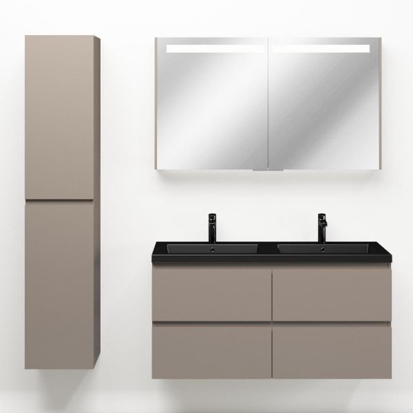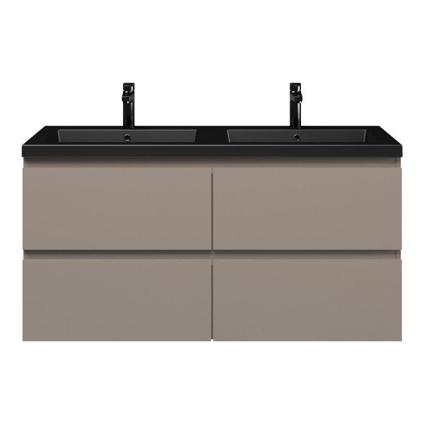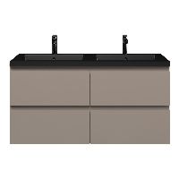 | | Bellanti Gisella/Esta badmeubel 120x46 4 softclose laden licht taupe greeploos polystone wastafel dubbel mat zwart met 2 kraangaten |