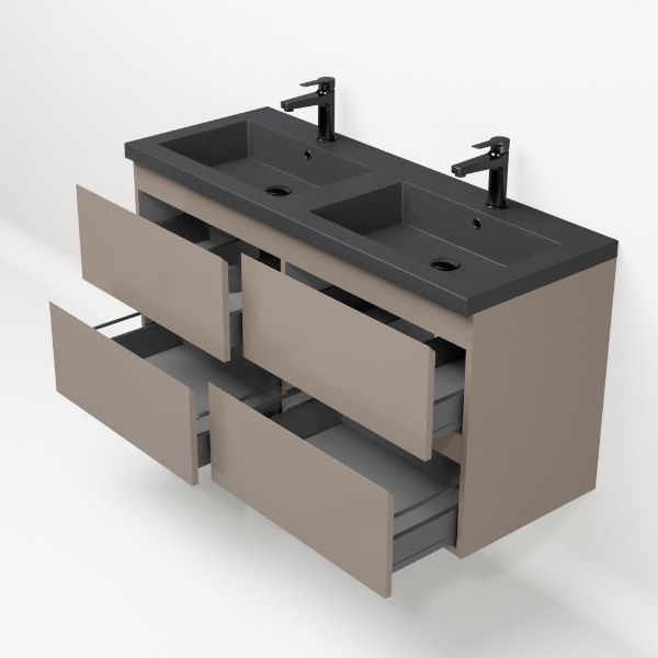 | Bellanti Gisella/Esta-Q badmeubel 120x46 4 softclose laden licht taupe greeploos quartz wastafel dubbel mat grijs met 2 kraangaten |