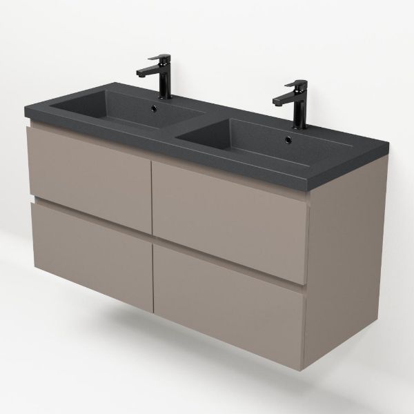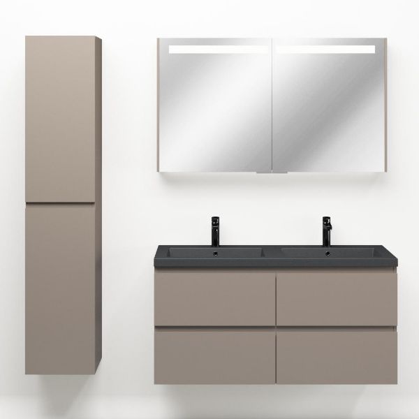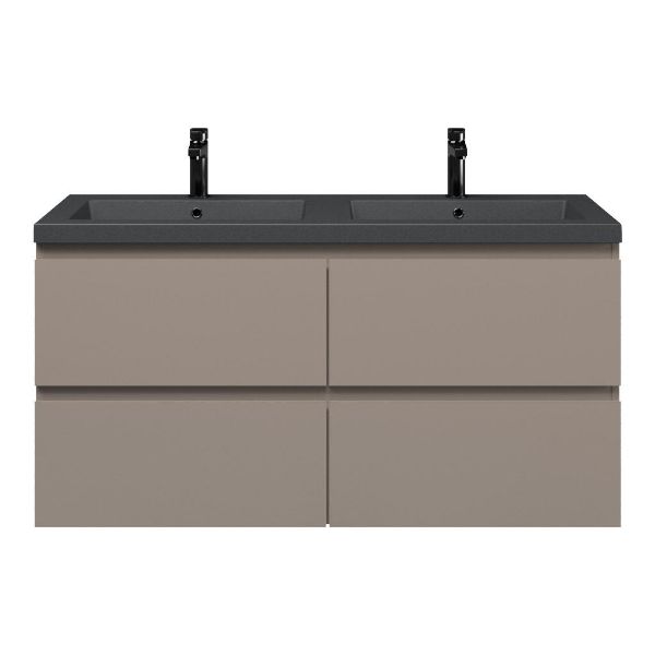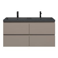 | | Bellanti Gisella/Esta-Q badmeubel 120x46 4 softclose laden licht taupe greeploos quartz wastafel dubbel mat grijs met 2 kraangaten |