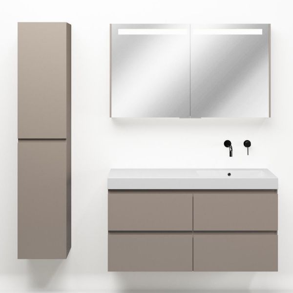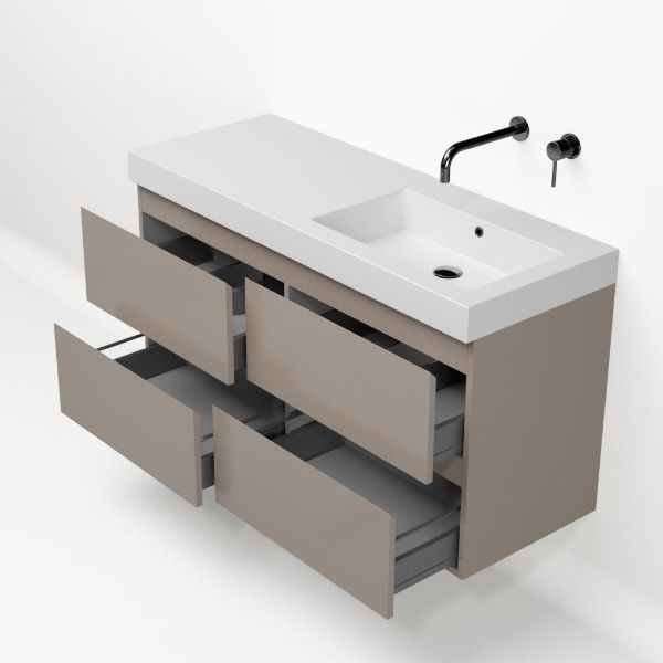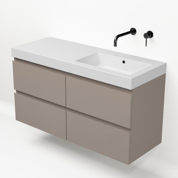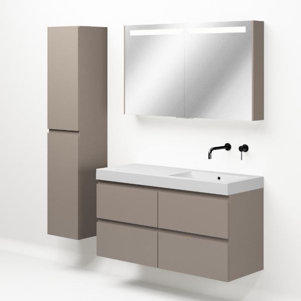 | Bellanti Gisella/Esta-Q badmeubel 120x46 4 softclose laden licht taupe greeploos quartz wastafel mat wit rechts zonder kraangaten |