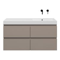| | Bellanti Gisella/Esta-Q badmeubel 120x46 4 softclose laden licht taupe greeploos quartz wastafel mat wit rechts zonder kraangaten |