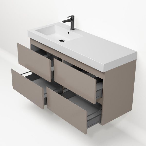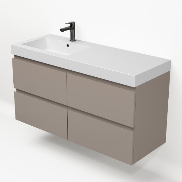 | Bellanti Gisella/Esta-q badmeubel 120x46 4 softclose laden licht taupe greeploos quartz wastafel mat wit links met 1 kraangat |