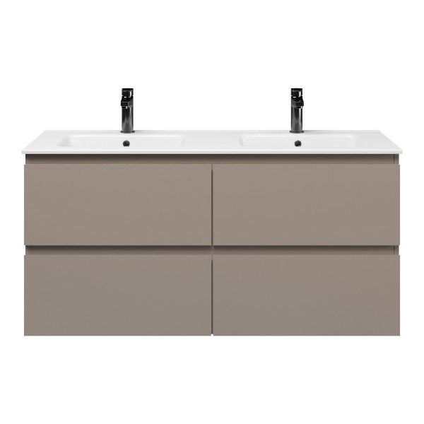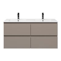 | Bellanti Gisella/Etna badmeubel 120x46 4 softclose laden licht taupe greeploos keramische wastafel dubbel wit met 2 kraangaten |