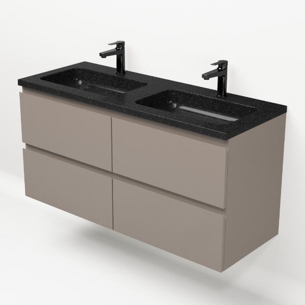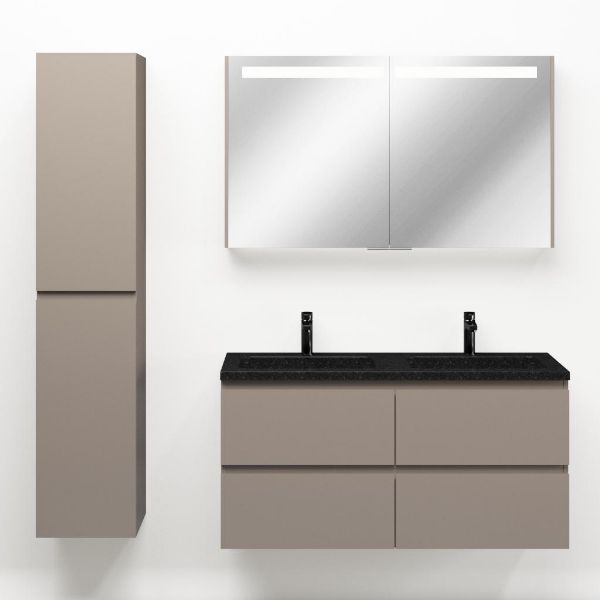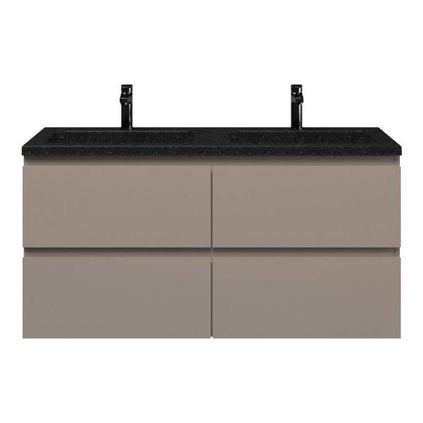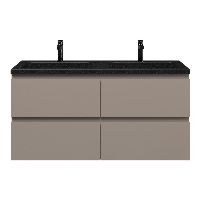 | | Bellanti Gisella/Square badmeubel 120x46 4 softclose laden licht taupe greeploos natuursteen wastafel dubbel shanxi black met 2 kraangaten |