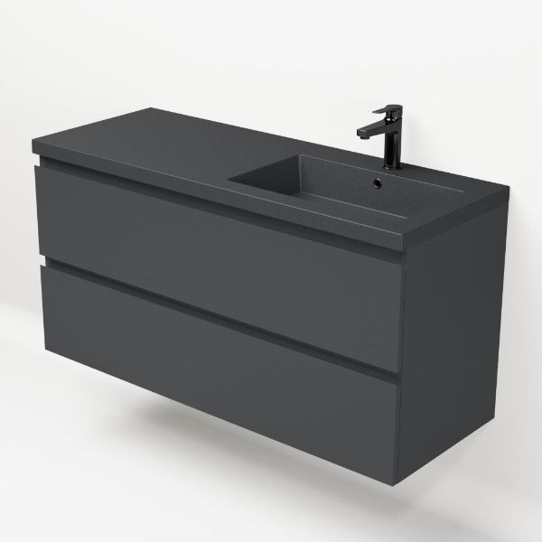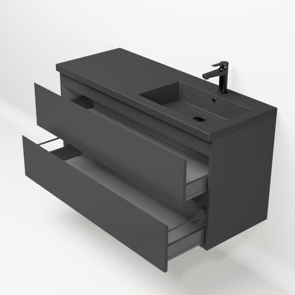 | Bellanti Fiore /Esta-q badmeubel 120x46 2 softclose laden antraciet mat greeploos quartz wastafel mat grijs rechts met 1 kraangat |