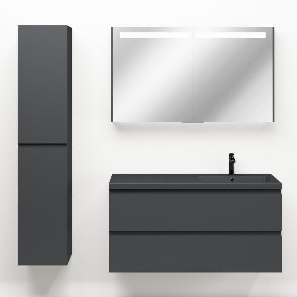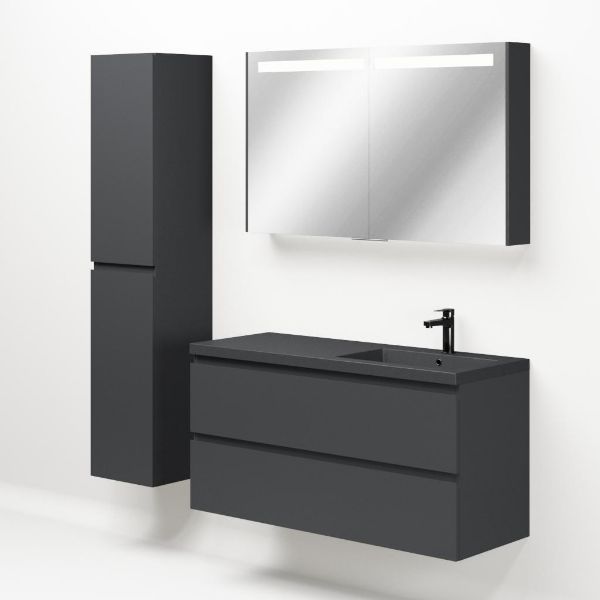 | | Bellanti Fiore /Esta-q badmeubel 120x46 2 softclose laden antraciet mat greeploos quartz wastafel mat grijs rechts met 1 kraangat |