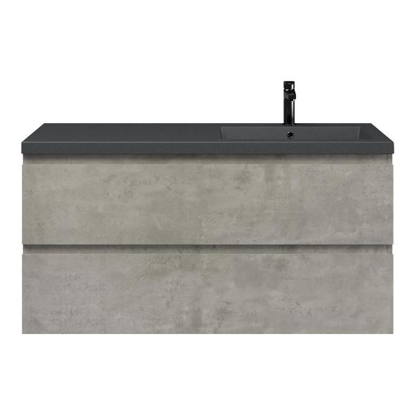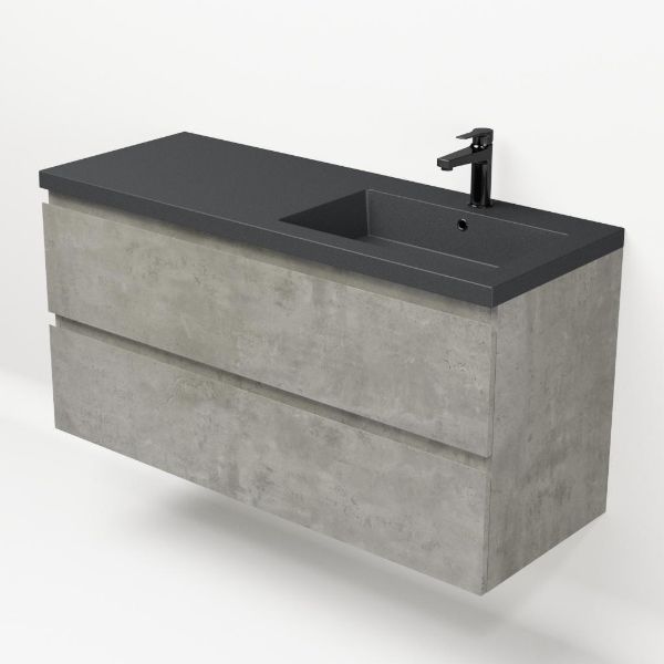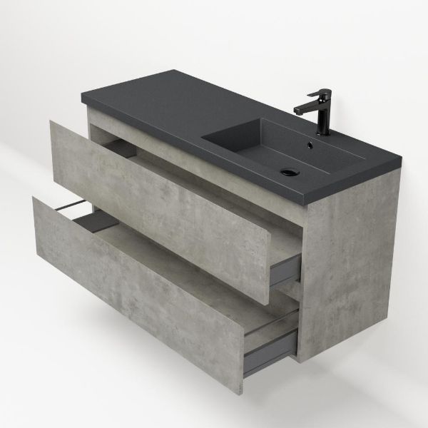 | Bellanti Fiore /Esta-q badmeubel 120x46 2 softclose laden beton greeploos quartz wastafel mat grijs rechts met 1 kraangat |