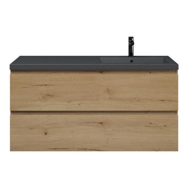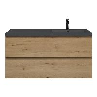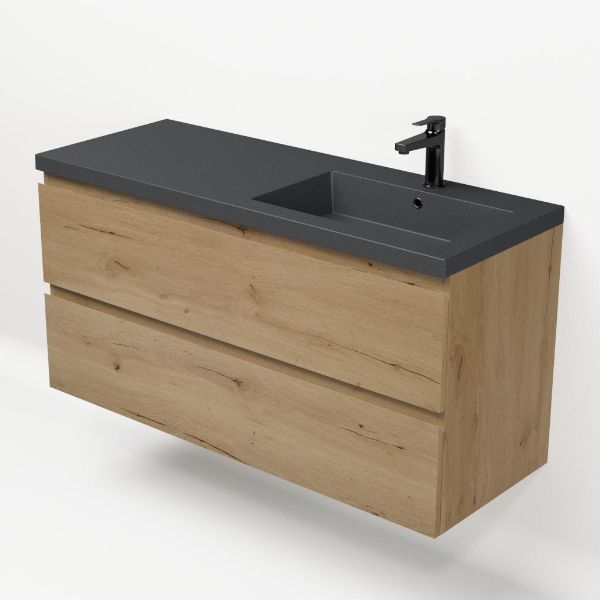 | | Bellanti Fiore /Esta-q badmeubel 120x46 2 softclose laden eiken natuur greeploos quartz wastafel mat grijs rechts met 1 kraangat |