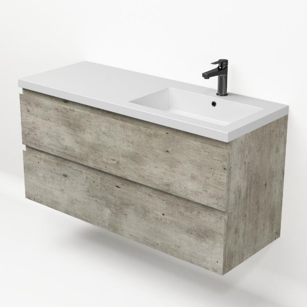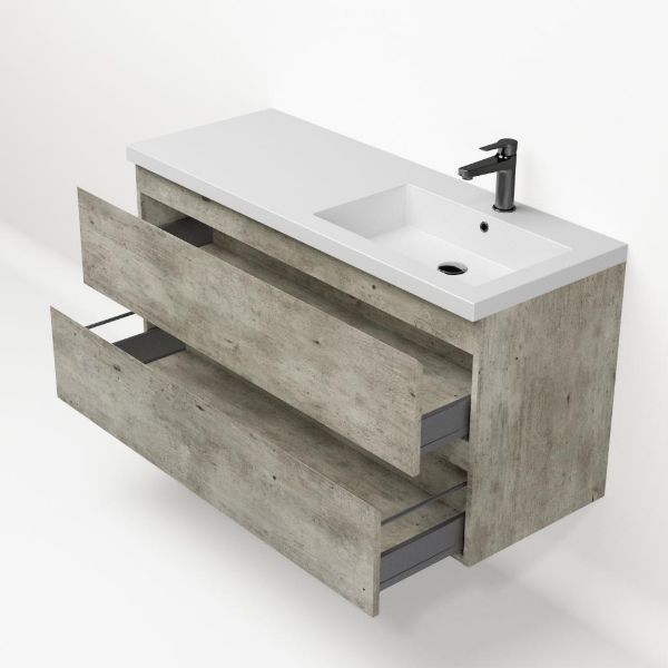 | Bellanti Fiore /Esta-q badmeubel 120x46 2 softclose laden steigerhout licht grijs greeploos quartz wastafel mat wit rechts met 1 kraangat |