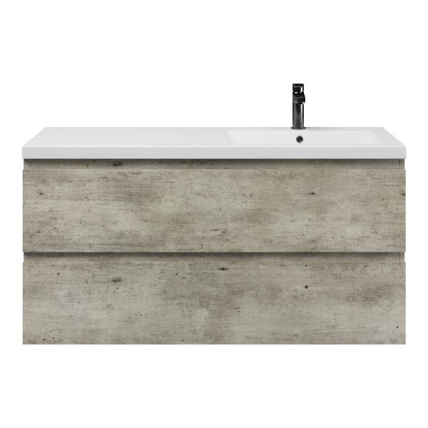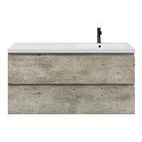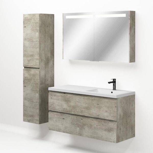 | | Bellanti Fiore /Esta-q badmeubel 120x46 2 softclose laden steigerhout licht grijs greeploos quartz wastafel mat wit rechts met 1 kraangat |