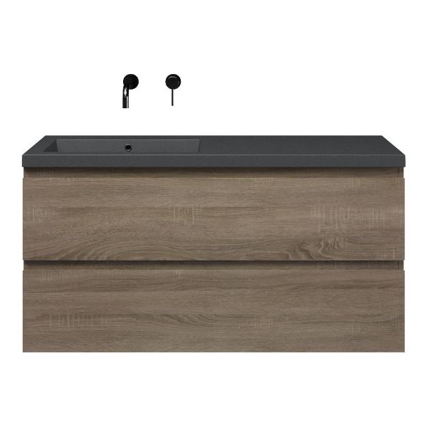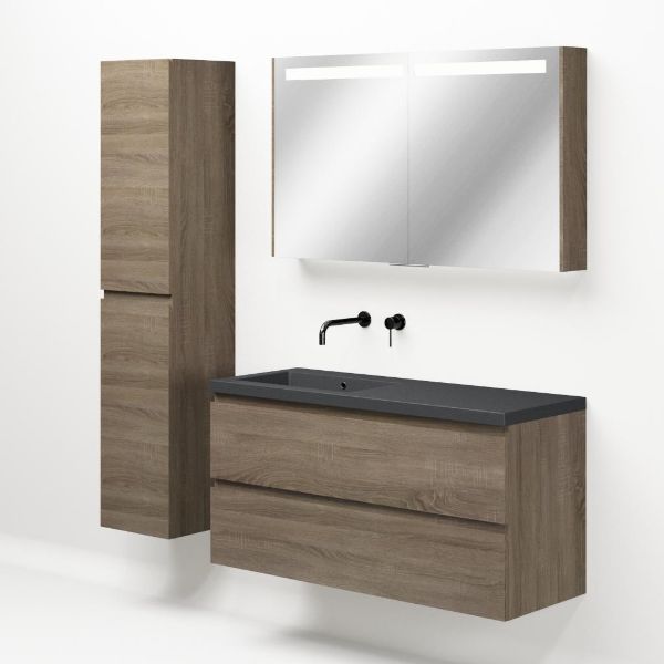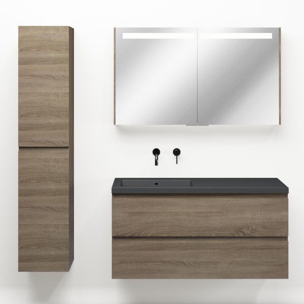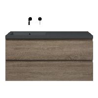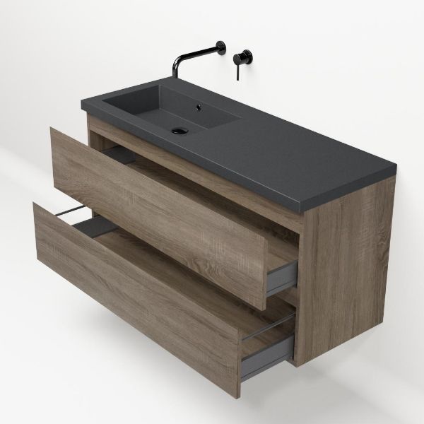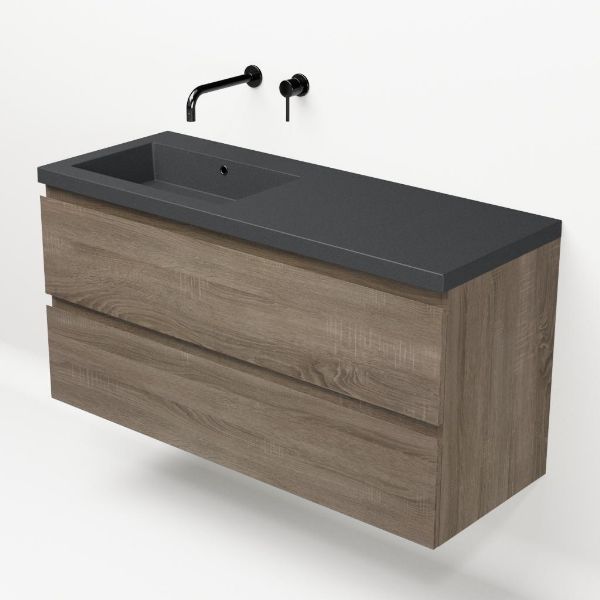 | | Bellanti Fiore /Esta-Q badmeubel 120x46 2 softclose laden eiken donker greeploos quartz wastafel mat grijs links zonder kraangaten |