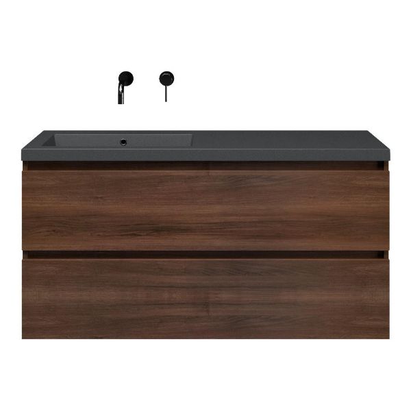 | | Bellanti Fiore /Esta-Q badmeubel 120x46 2 softclose laden walnoot greeploos quartz wastafel mat grijs links zonder kraangaten |