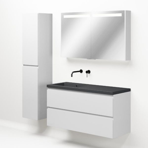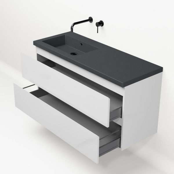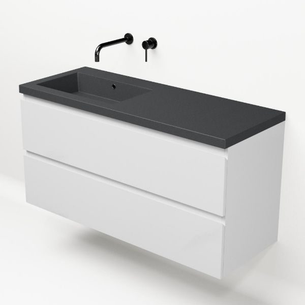 | Bellanti Fiore /Esta-Q badmeubel 120x46 2 softclose laden wit hoogglans greeploos quartz wastafel mat grijs links zonder kraangaten |