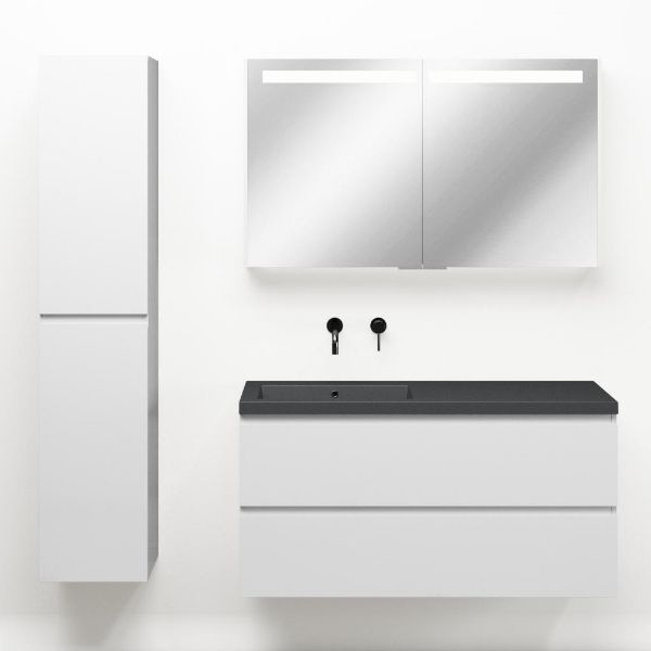| | Bellanti Fiore /Esta-Q badmeubel 120x46 2 softclose laden wit hoogglans greeploos quartz wastafel mat grijs links zonder kraangaten |