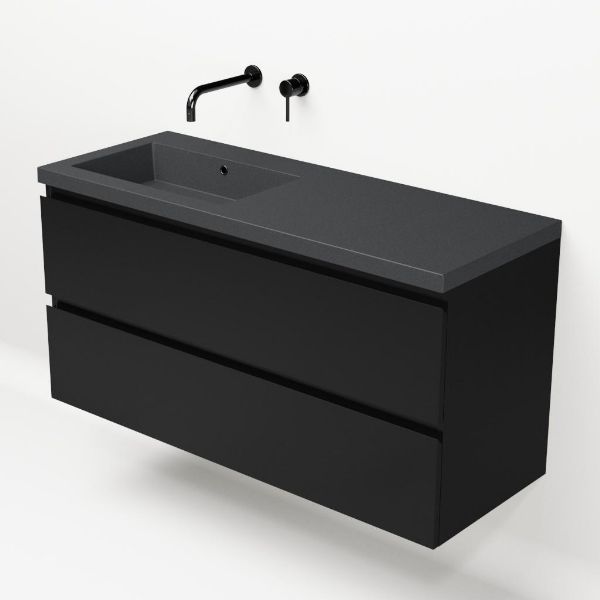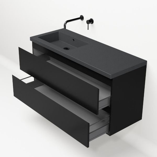 | Bellanti Fiore /Esta-Q badmeubel 120x46 2 softclose laden zwart mat greeploos quartz wastafel mat grijs links zonder kraangaten |