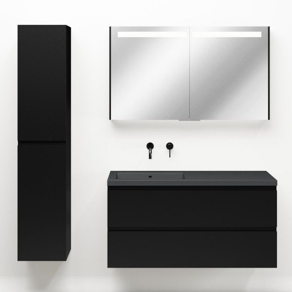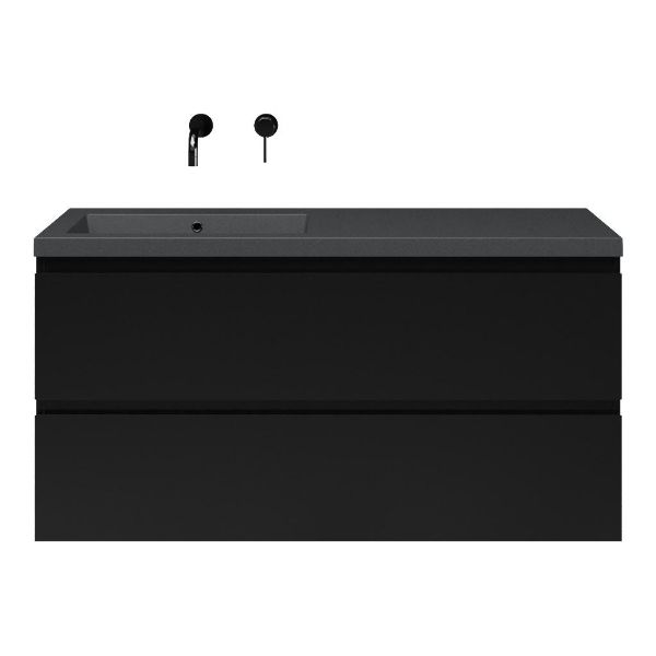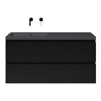 | | Bellanti Fiore /Esta-Q badmeubel 120x46 2 softclose laden zwart mat greeploos quartz wastafel mat grijs links zonder kraangaten |