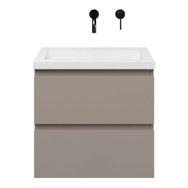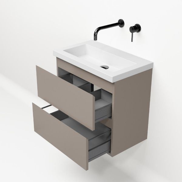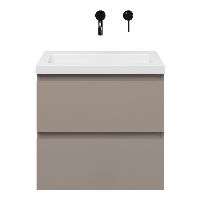 | | Bellanti Secca/Esta ondiep badmeubel 60x36 2 softclose laden taupe greeploos polystone wastafel wit zonder kraangaten |