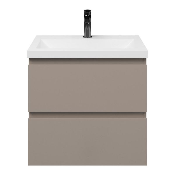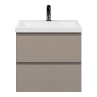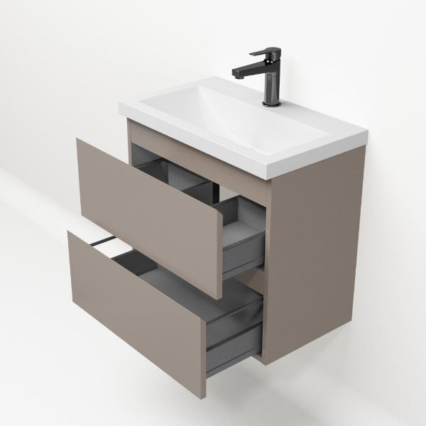 | Bellanti Secca/Lidia ondiep badmeubel 60x36 2 softclose laden taupe greeploos polystone wastafel wit met 1 kraangat |