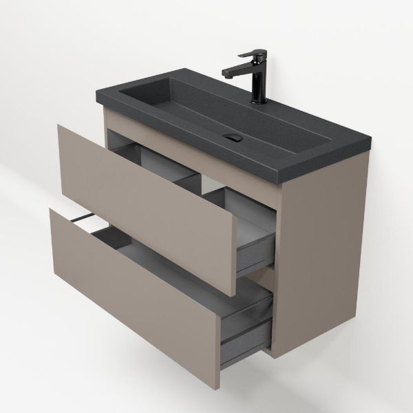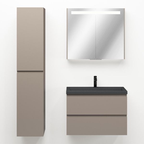 | | Bellanti Secca/Esta-Q ondiep badmeubel 80x36 2 softclose laden taupe greeploos met quartz wastafel mat grijs met 1 kraangat zonder overloop |