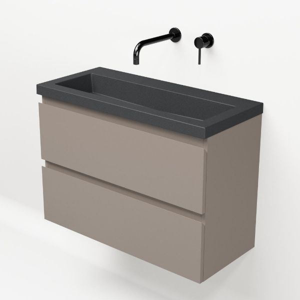 | | Bellanti Secca/Esta-Q ondiep badmeubel 80x36 2 softclose laden taupe greeploos met quartz wastafel mat grijs zonder kraangat zonder overloop |