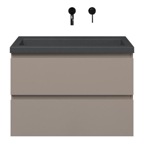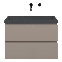 | Bellanti Secca/Esta-Q ondiep badmeubel 80x36 2 softclose laden taupe greeploos met quartz wastafel mat grijs zonder kraangat zonder overloop |