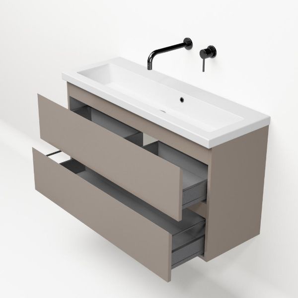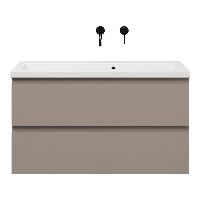 | Bellanti Secca/Amelia ondiep badmeubel 100x36 2 softclose laden taupe greeploos keramische wastafel wit zonder kraangaten |