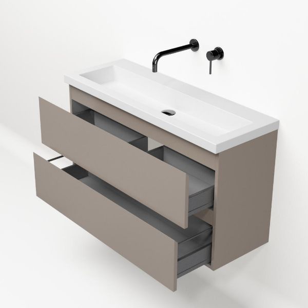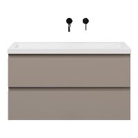 | | Bellanti Secca/Esta ondiep badmeubel 100x36 2 softclose laden taupe greeploos polystone wastafel wit zonder kraangaten |