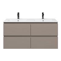 | Bellanti Gisella/Faro badmeubel 120x46 4 softclose laden taupe greeploos keramische wastafel dubbel wit met 2 kraangaten |