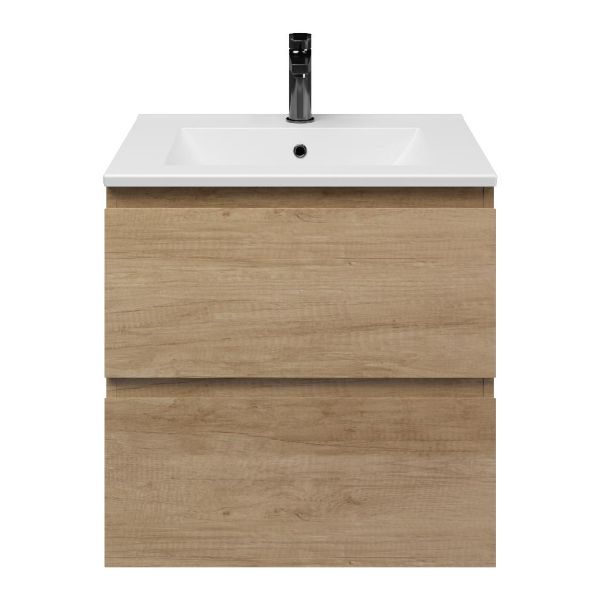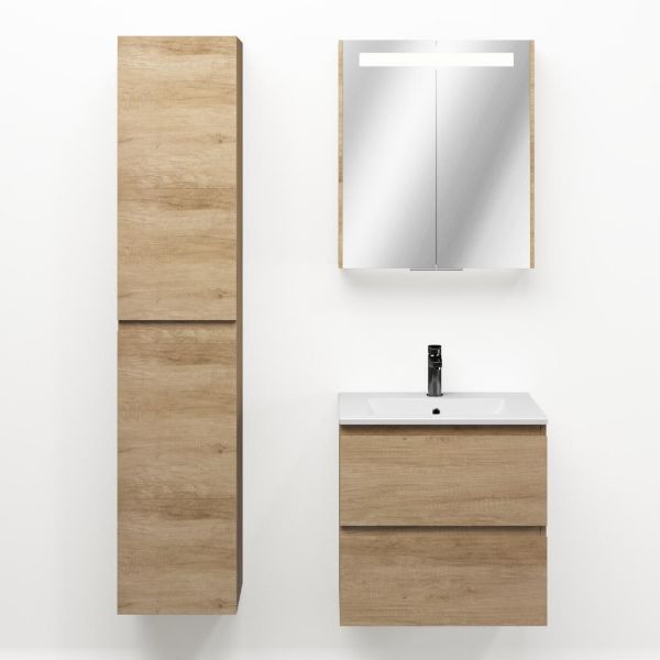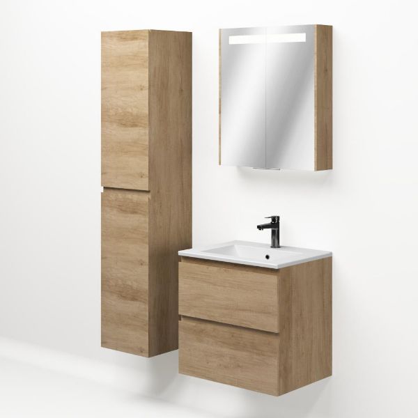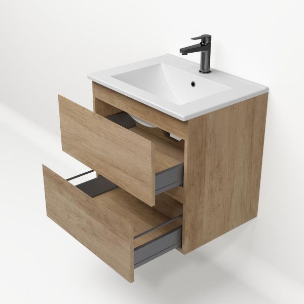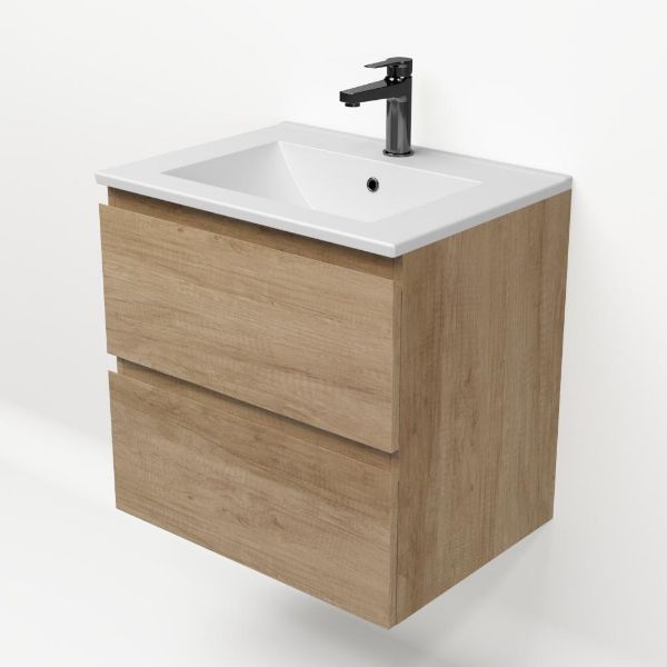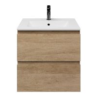 Greeploos badkamermeubel in de kleur olm is 60 cm breed. De wastafel is vervaardig in keramiek en heeft de kleur wit mat keramiek. Dit badkamermeubel met deze wastafel is leverbaar tussen de 60 cm t/m 120 cm