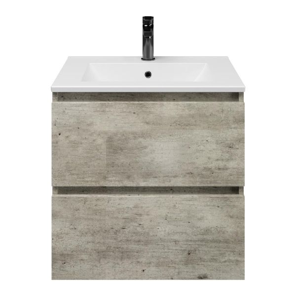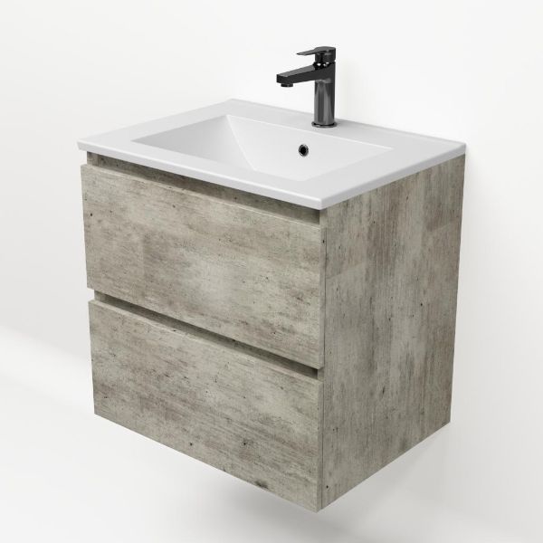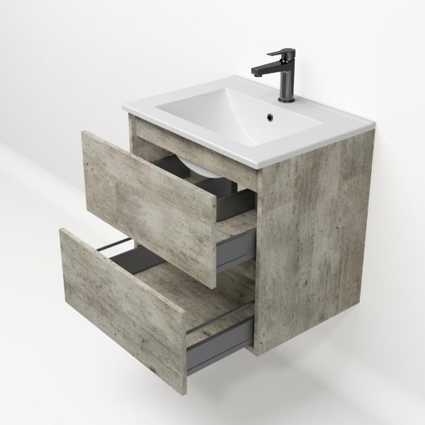 | | Bellanti Elena/Faro badmeubel 60x46 2 softclose laden steigerhout licht grijs greeploos keramische wastafel mat wit met 1 kraangat |