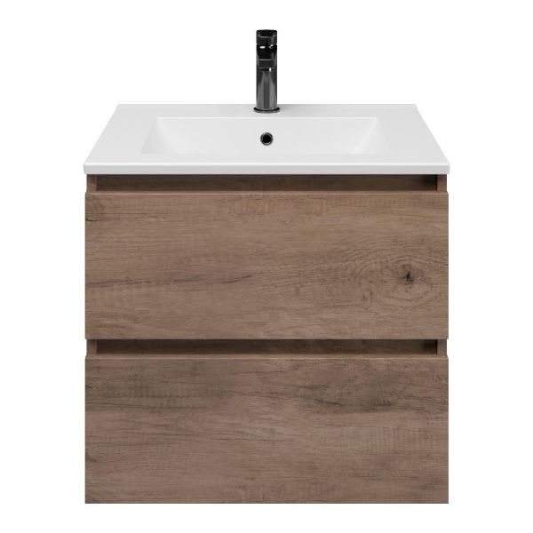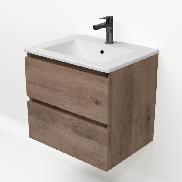 | | TrisLine Gia/Faro badmeubel 60x46 2 softclose laden allicante eiken greeploos keramische wastafel mat wit met 1 kraangat |
