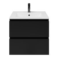 | | TrisLine Gia/Faro badmeubel 60x46 2 softclose laden mat zwart greeploos keramische wastafel mat wit met 1 kraangat |