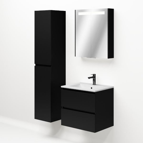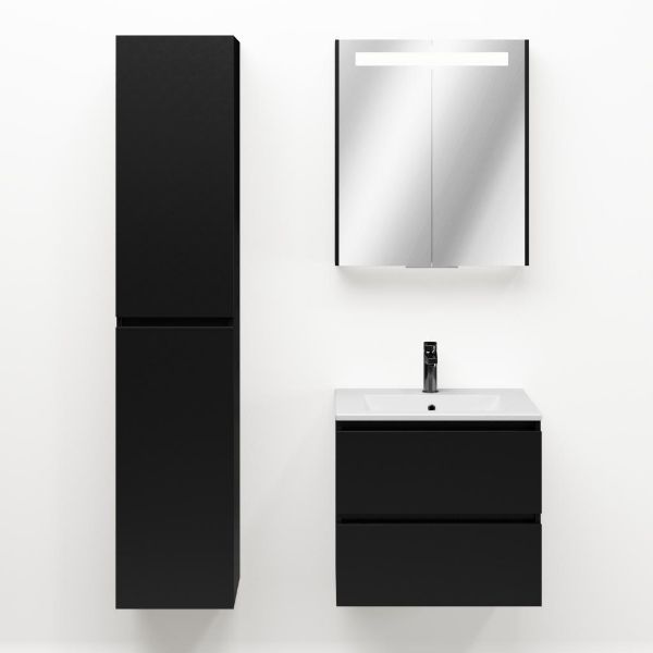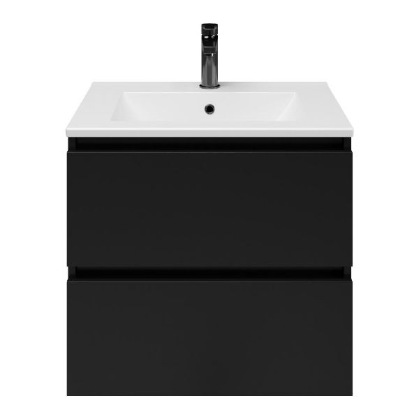 | TrisLine Gia/Faro badmeubel 60x46 2 softclose laden mat zwart greeploos keramische wastafel mat wit met 1 kraangat |