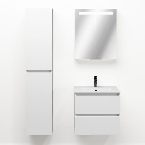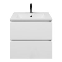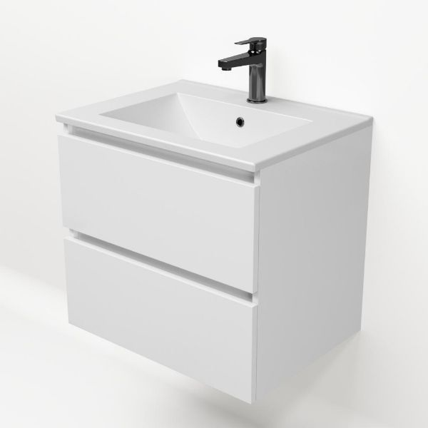 | TrisLine Gia/Faro badmeubel 60x46 2 softclose laden wit hoogglans greeploos keramische wastafel mat wit met 1 kraangat |