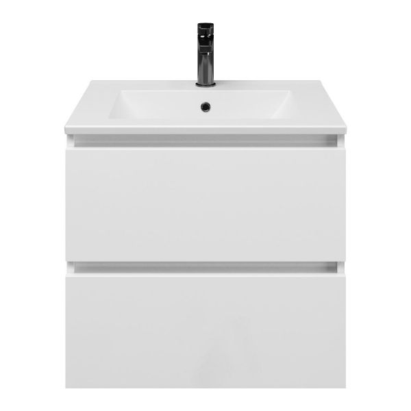 | | TrisLine Gia/Faro badmeubel 60x46 2 softclose laden wit hoogglans greeploos keramische wastafel mat wit met 1 kraangat |