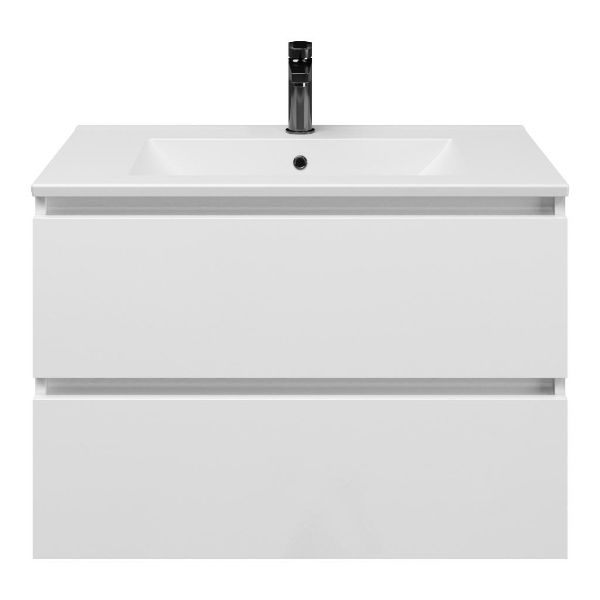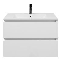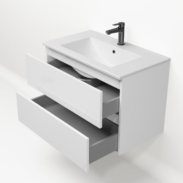 | | TrisLine Gia/Faro badmeubel 80x46 2 softclose laden wit hoogglans greeploos keramische wastafel mat wit met 1 kraangat |