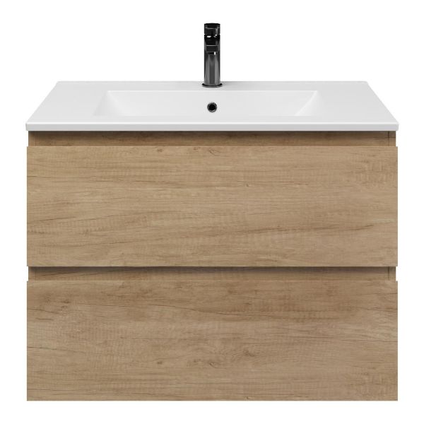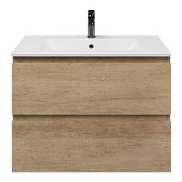 Greeploos badkamermeubel in de kleur olm is 80 cm breed. De wastafel is vervaardig in keramiek en heeft de kleur wit mat keramiek. Dit badkamermeubel met deze wastafel is leverbaar tussen de 60 cm t/m 120 cm