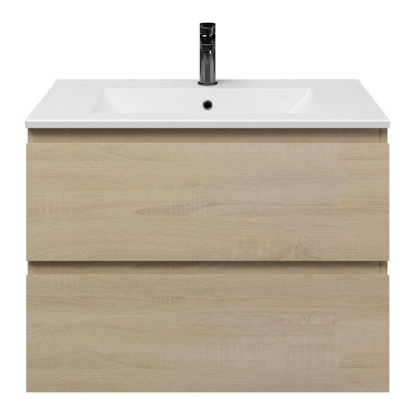 | Bellanti Elena/Faro badmeubel 80x46 2 softclose laden eiken licht greeploos keramische wastafel mat wit met 1 kraangat |