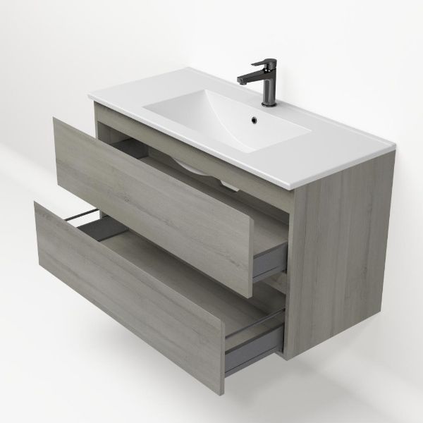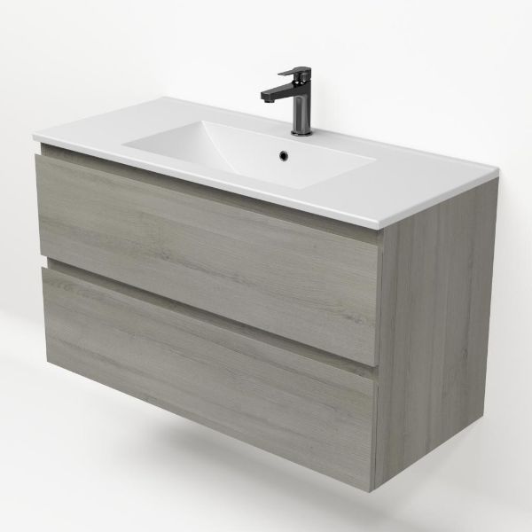 | Bellanti Elena/Faro badmeubel 100x46 2 softclose laden eiken licht grijs greeploos keramische wastafel mat wit met 1 kraangat |