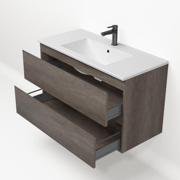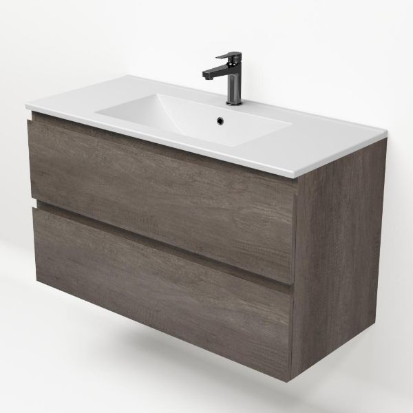 | | Bellanti Elena/Faro badmeubel 100x46 2 softclose laden olm donker grijs greeploos keramische wastafel mat wit met 1 kraangat |