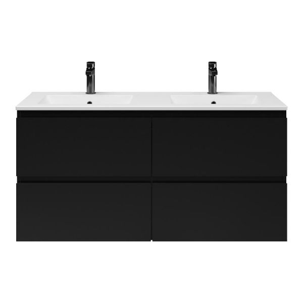 | | Bellanti Gisella/Faro badmeubel 120x46 4 softclose laden zwart mat greeploos keramische wastafel dubbel mat wit met 2 kraangaten |