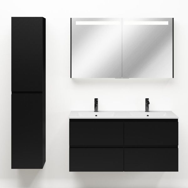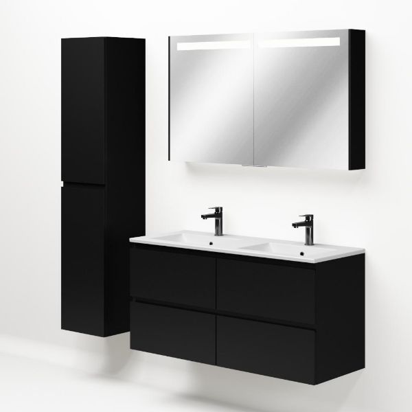 | Bellanti Gisella/Faro badmeubel 120x46 4 softclose laden zwart mat greeploos keramische wastafel dubbel mat wit met 2 kraangaten |