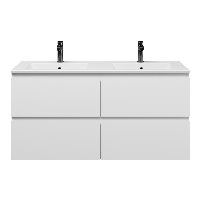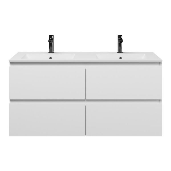 | | Bellanti Gisella/Faro badmeubel 120x46 4 softclose laden wit mat greeploos keramische wastafel dubbel mat wit met 2 kraangaten |