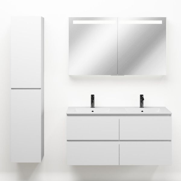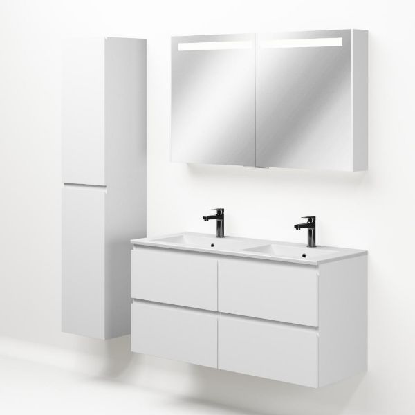 | Bellanti Gisella/Faro badmeubel 120x46 4 softclose laden wit mat greeploos keramische wastafel dubbel mat wit met 2 kraangaten |