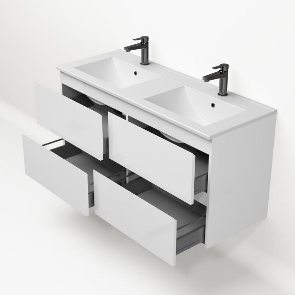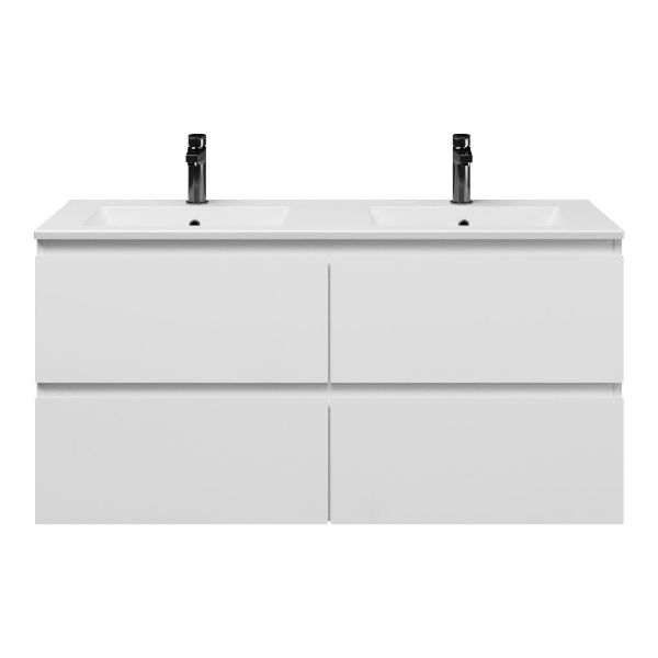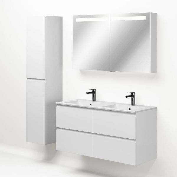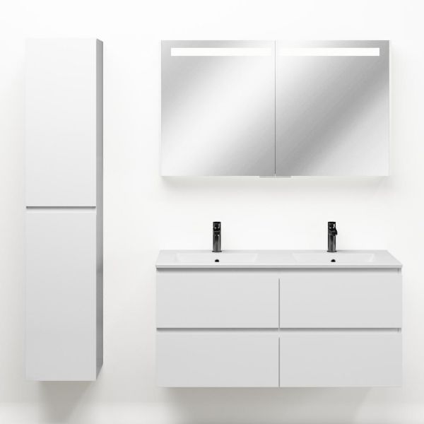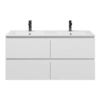 | Bellanti Gisella/Faro badmeubel 120x46 4 softclose laden wit hoogglans greeploos keramische wastafel dubbel mat wit met 2 kraangaten |